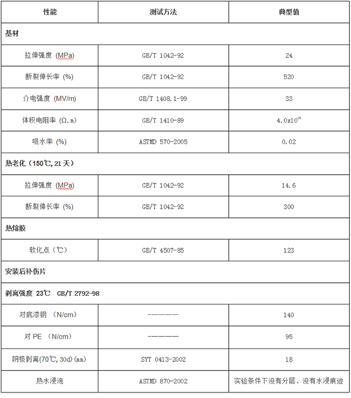 管道防腐補(bǔ)傷片是一種專門為鋼質(zhì)管道聚乙烯防腐層補(bǔ)傷設(shè)計(jì)研制而成。補(bǔ)傷片是由輻射交聯(lián)聚烯烴基材和特種密封熱熔膠復(fù)合而成。補(bǔ)傷片在施工時(shí)加熱,使特種熱熔膠涂層融化,與補(bǔ)傷部位緊密粘接,和原管道聚乙烯外防腐層形成一體,均勻包覆在管道表面,形成連續(xù)緊密的防腐體系,可抵抗土壤應(yīng)力,抗靜水壓力,抗陰極剝離,抗化學(xué)腐蝕和霉菌侵蝕等多種腐蝕形為,為鋼質(zhì)管道提供長(zhǎng)期、有效的保護(hù)。補(bǔ)傷片主要用于聚乙烯兩層防腐和三層防腐的管道聚乙烯外防腐層在運(yùn)輸、檢驗(yàn)及施工過(guò)程中造成的損傷修復(fù),如局部區(qū)域的點(diǎn)傷、線劃傷小于100mm見(jiàn)方的小面積損傷。補(bǔ)傷棒是純熱熔膠棒,配合補(bǔ)傷片使用,或補(bǔ)傷較小碰傷點(diǎn)。